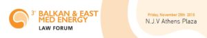 Metaxas & Associates Law Firm, under the auspices of the Hellenic Energy Regulation Institute,  sponsors and is glad to announce the upcoming 3RD BALKAN & EASTMED ENERGY LAW FORUM, organized by Palladian Conferences, that will take place on the November 29th, 2019 at the Hotel N.J.V Plaza in Athens.